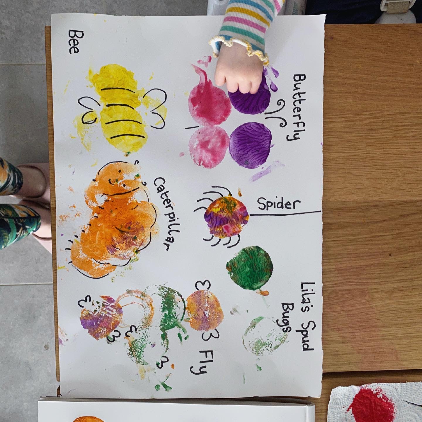 Option 2: For a more imaginative challenge, make some random and abstract potato stamps together and see what bug patterns you can see in the paint! 🦋