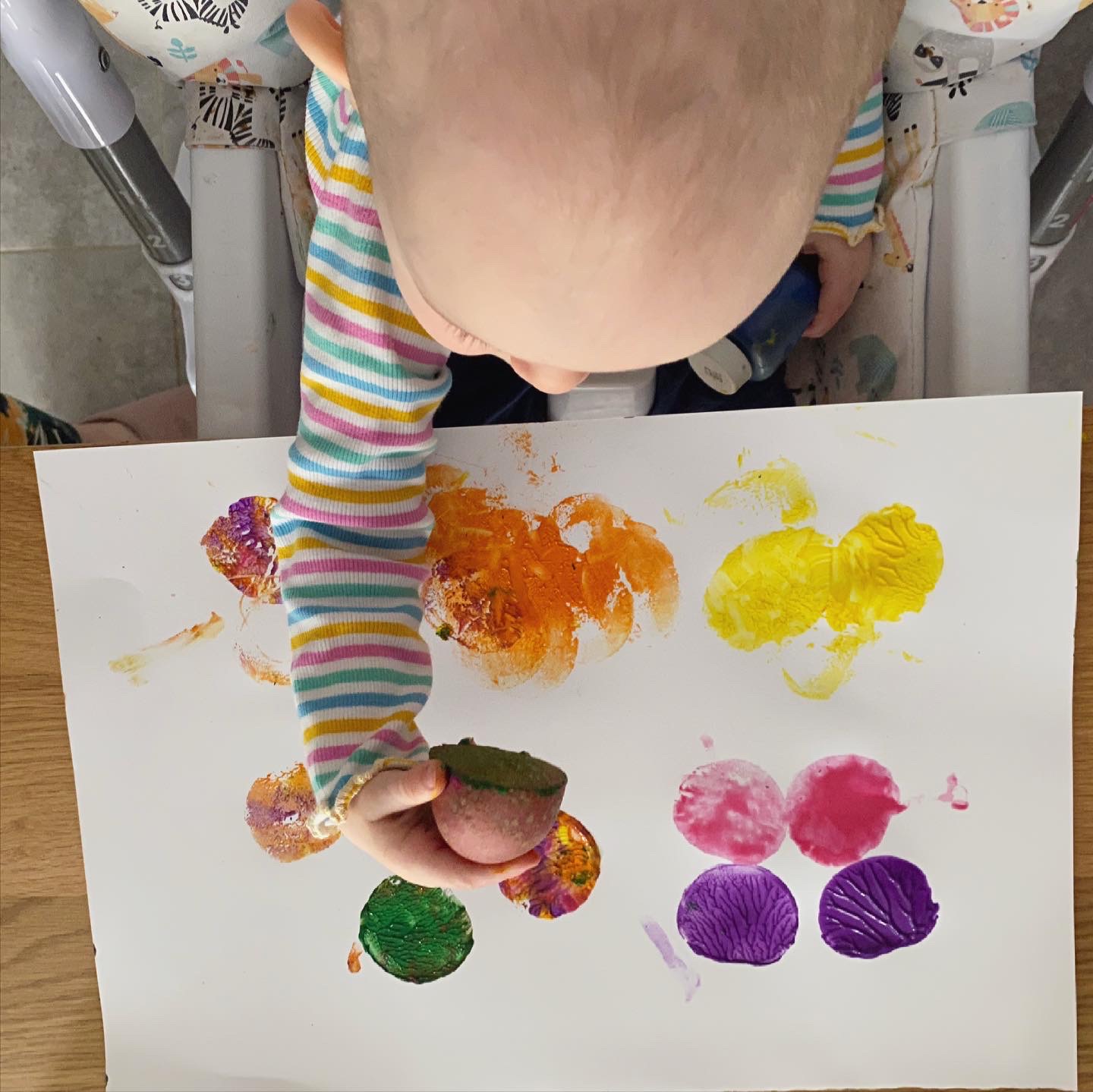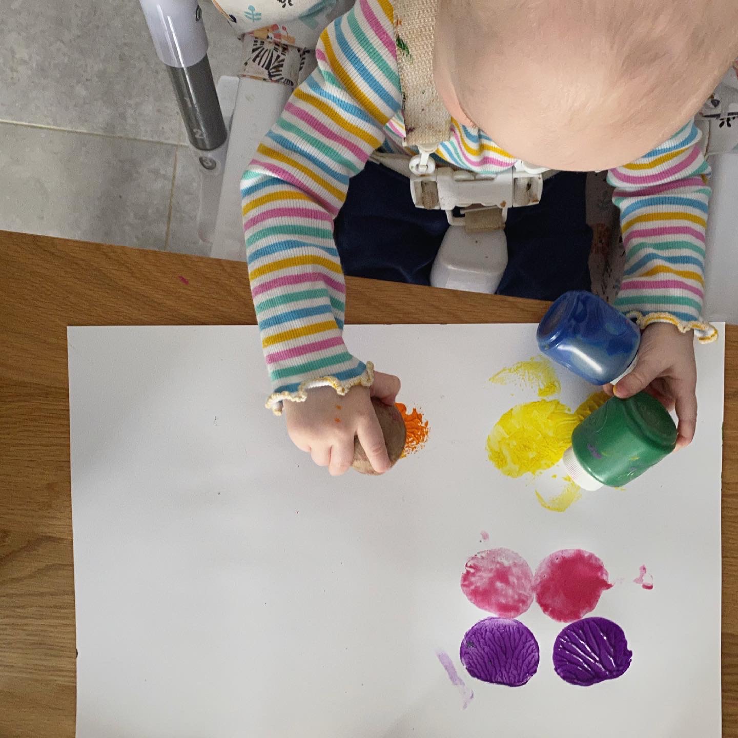 I used kitchen roll to dry off the chopped potatoes before using so they weren’t too watery, as well as to dab off any excess paint before stamping.