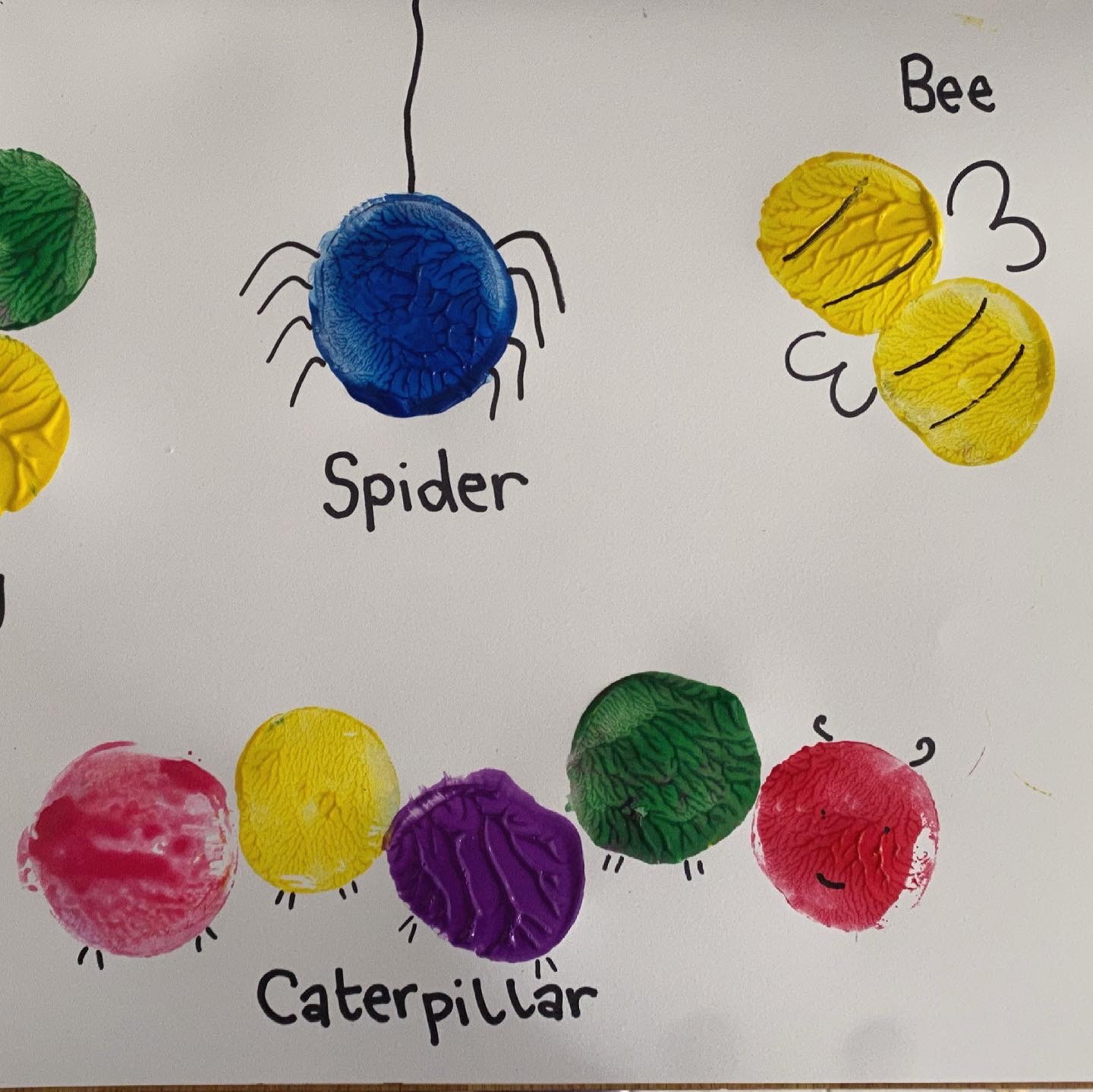 Option 1: Write the name of the bugs first and get your little one to stamp the potatoes to match the names.
