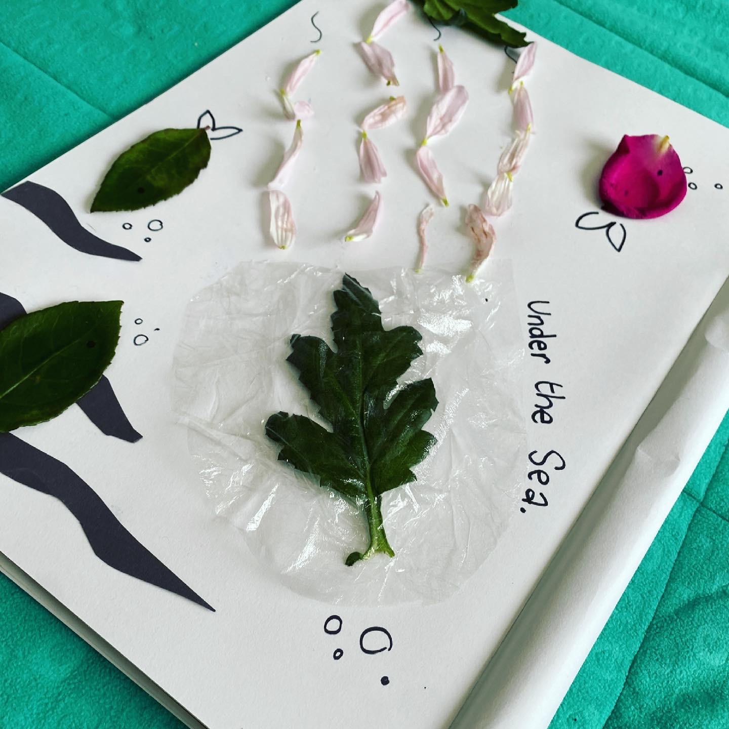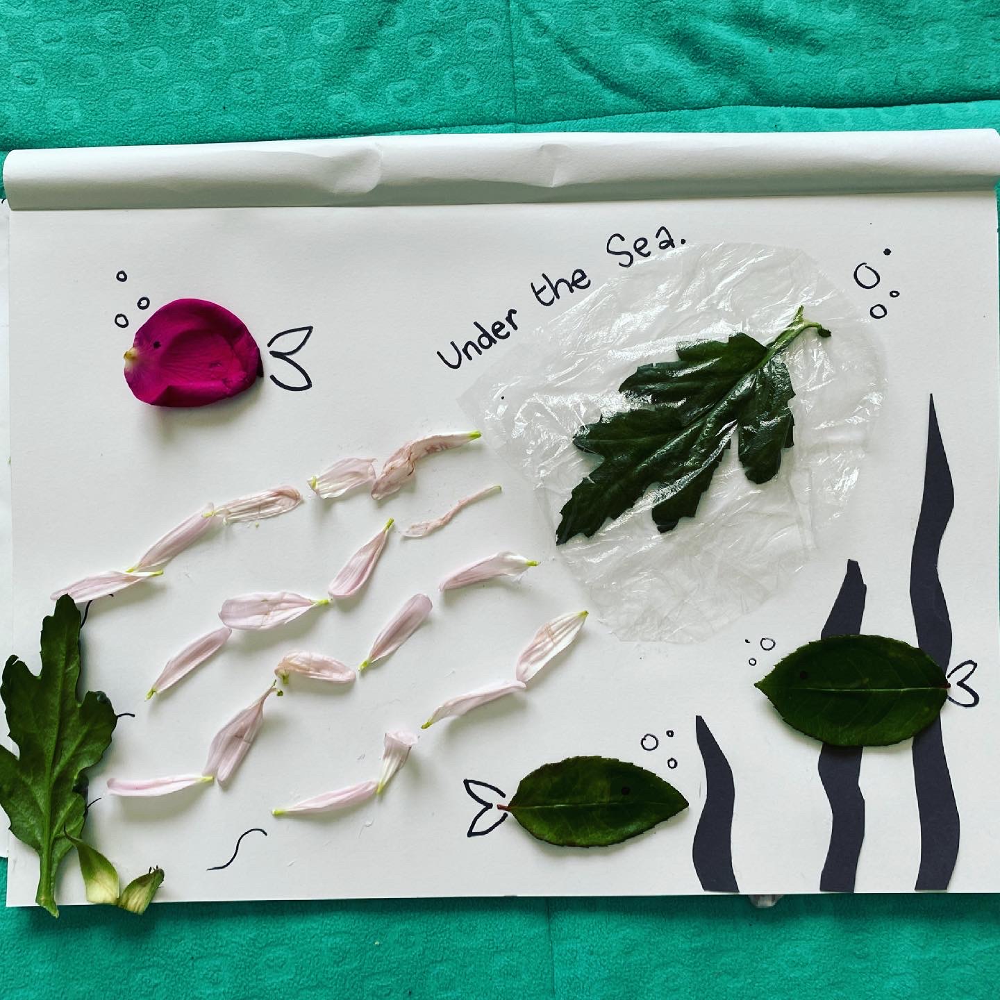 We used a selection of petals and leaves to make our sea creatures and plants!