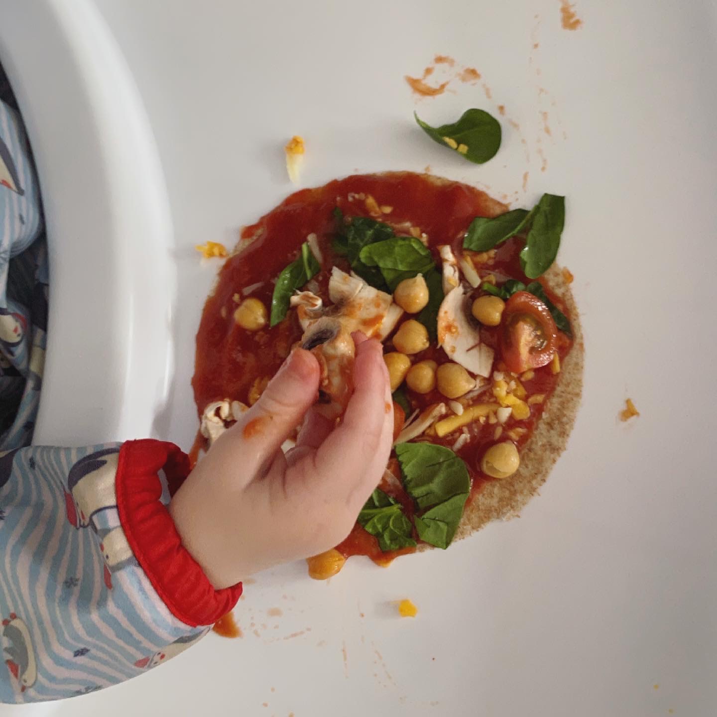 Yesterday we made a healthy edible ‘art-work’. 😂 This is actually based on a Fitness Blender recipe for a flatbread-style lunch and Lila absolutely LOVES it. She’s a big fan of her vegetables!